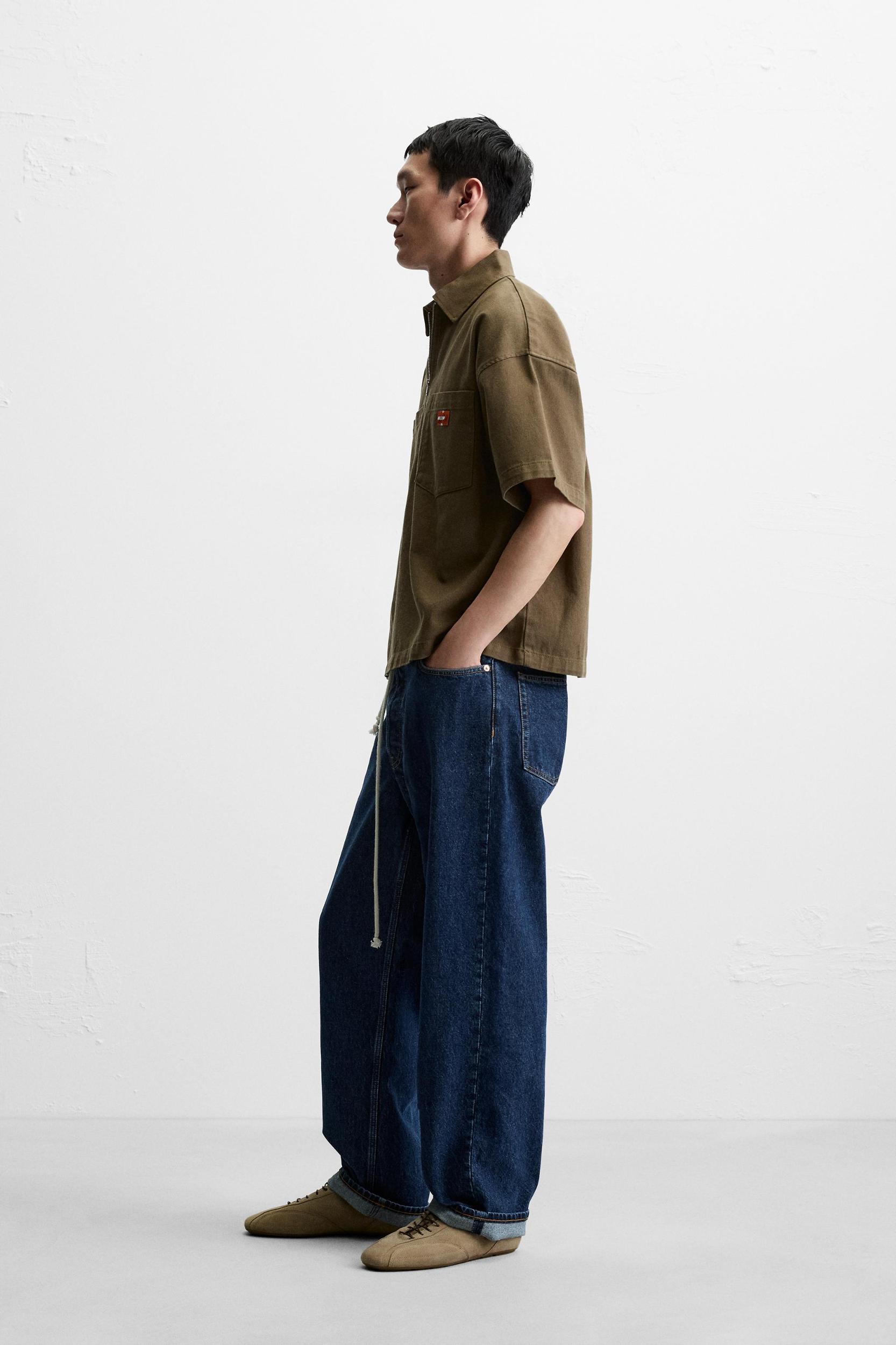 Mens Zip-Up Relaxed Shirt