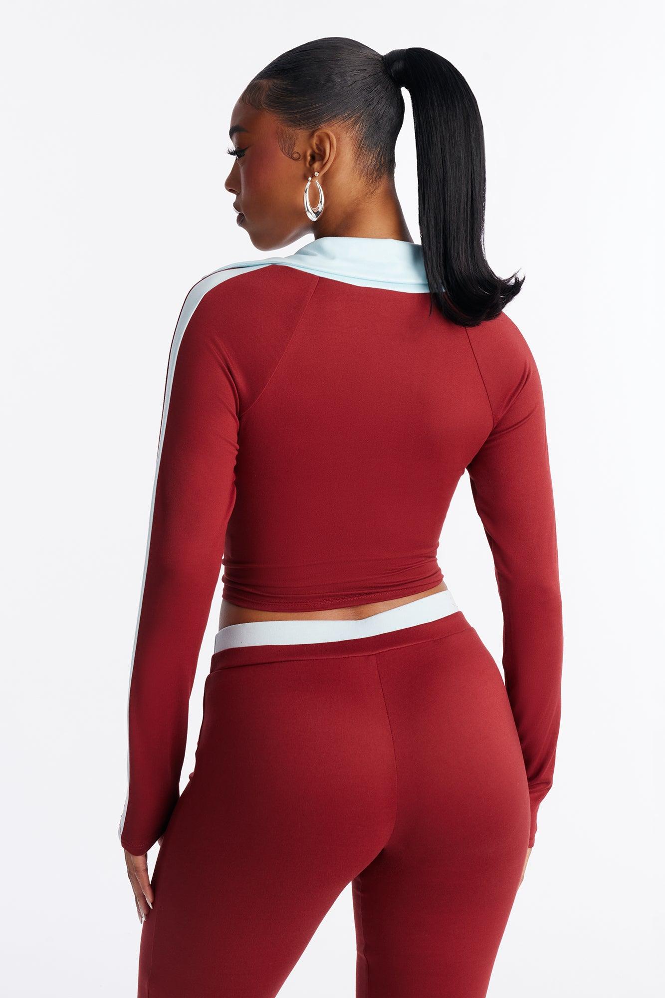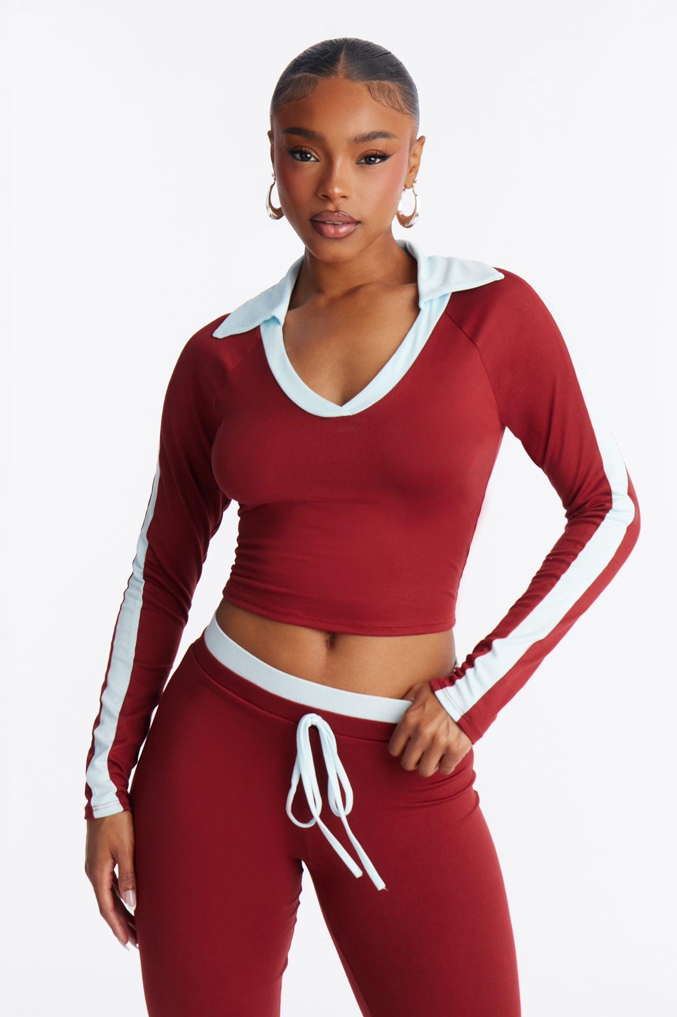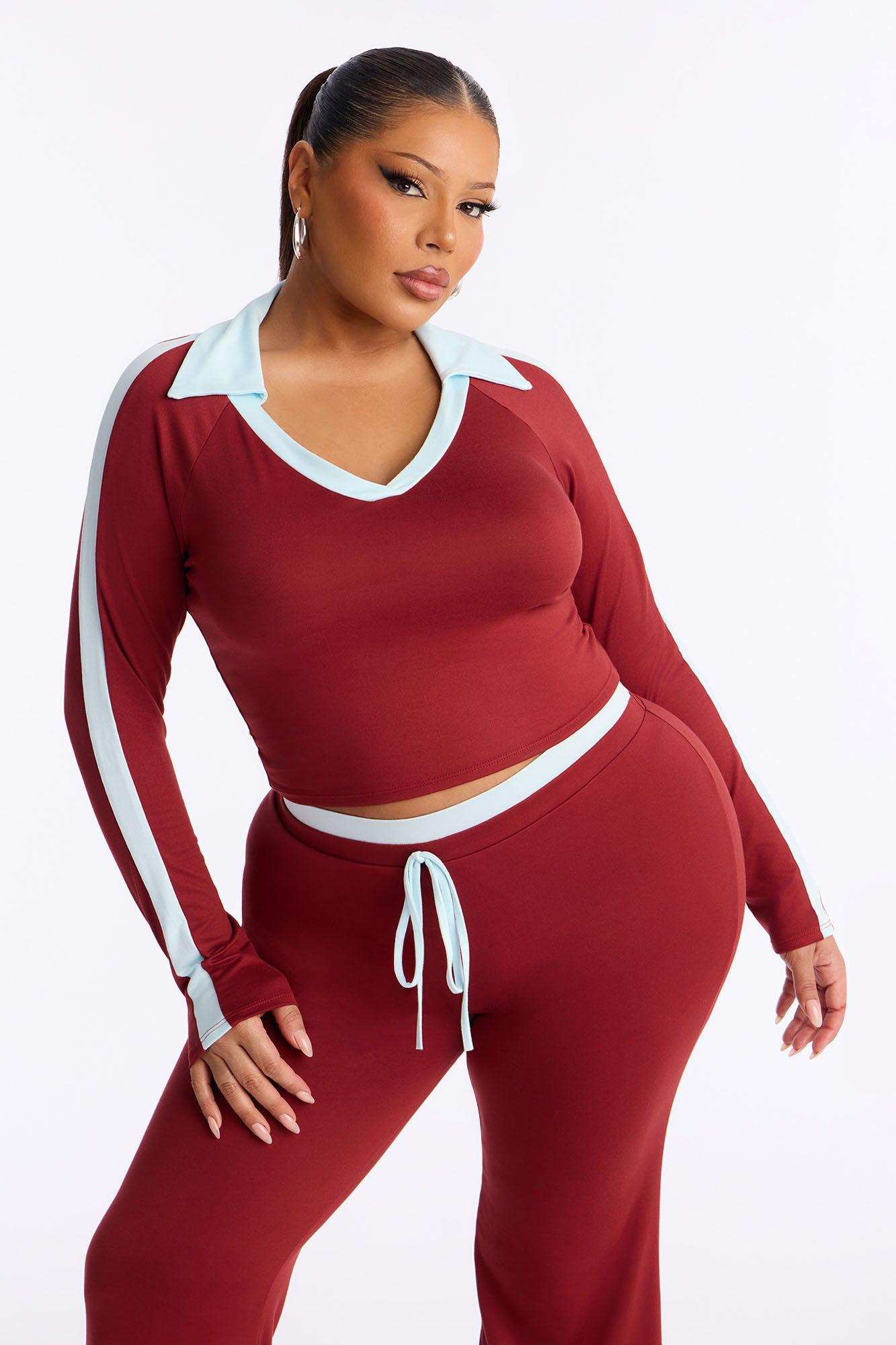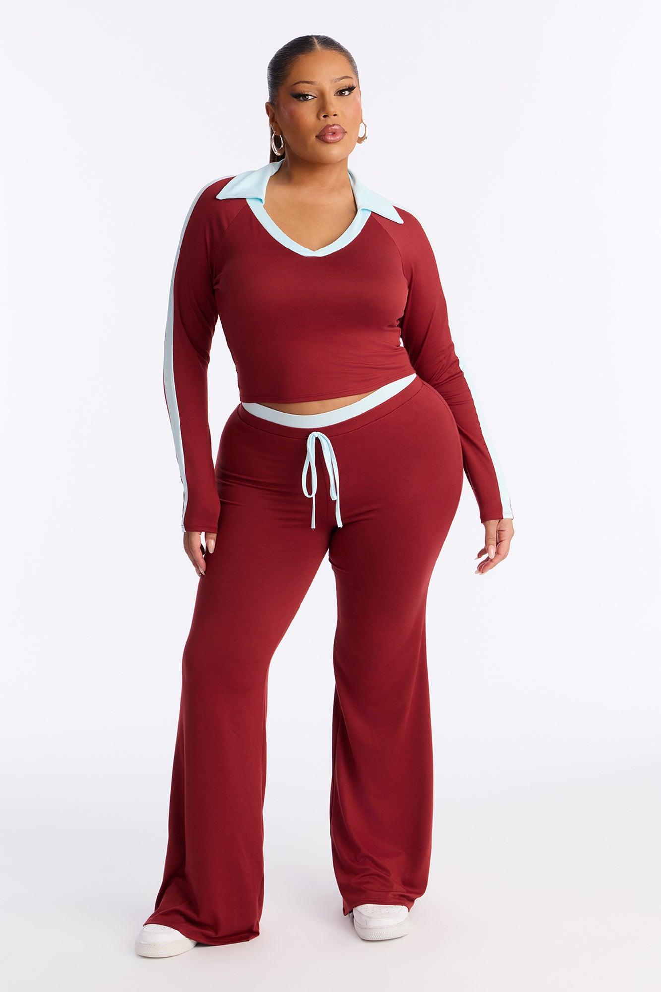 Zoe Contrast Trim Flare Leg Pant Set - Burgundy/combo Female