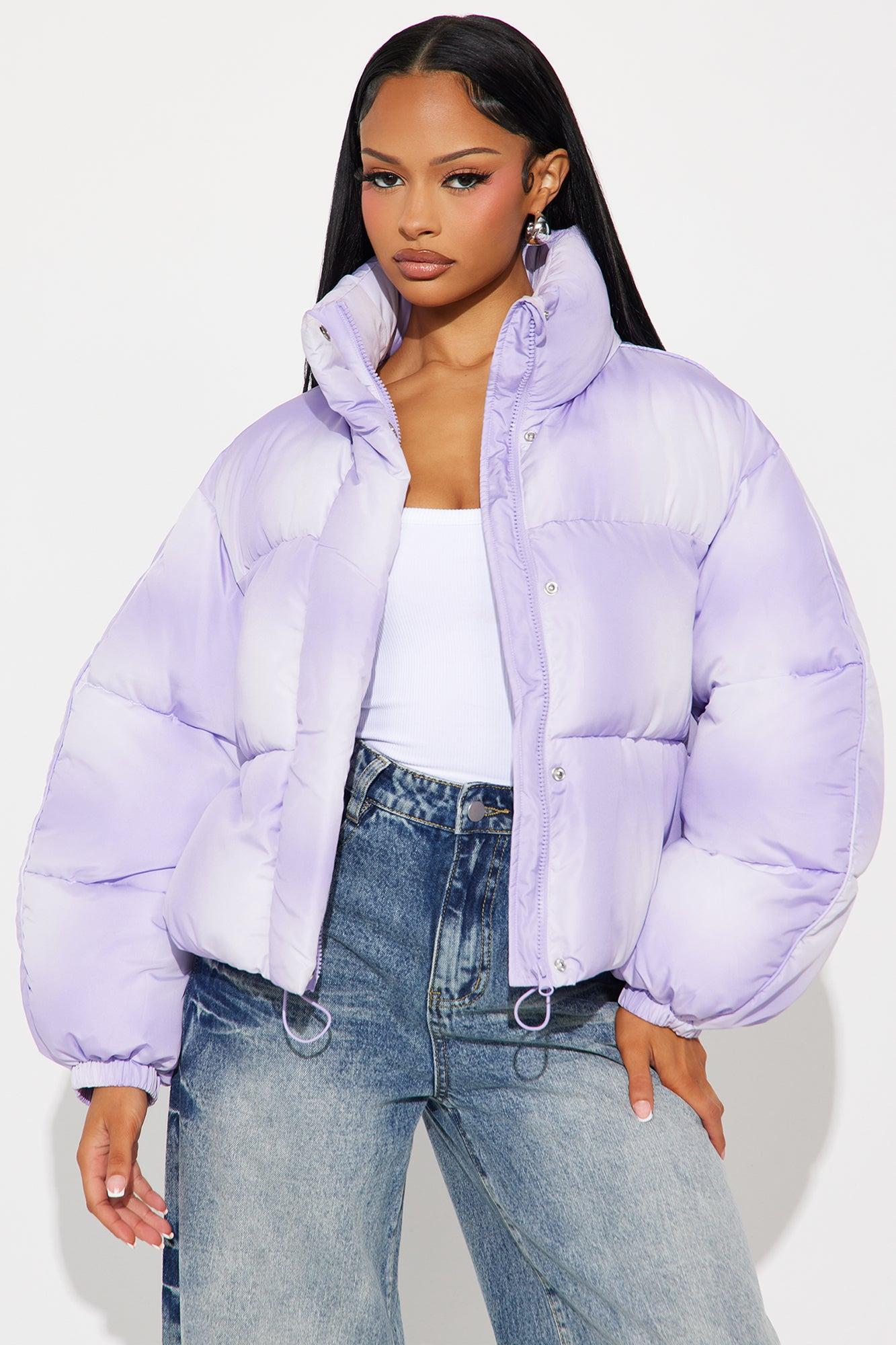 Available In Blue, Lavender, Pink And Yellow. Puffer Jacket Stand Collar Long Sleeves Button & Zipper Closure Ombre Side Pockets Adjustable Hem Fully Lined Cropped Disclaimer: Print Placement May Vary Shell: 100% Polyester Lining: 100% Polyester Filling: 100% Polyester California Proposition 65WARNING: Cancer and Reproductive Harm - www.P65Warnings.ca.gov.