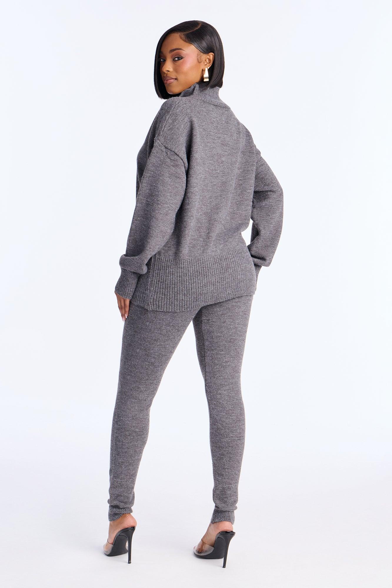 Available In Charcoal. 2 Piece Ensemble Zip Up Sweater And Legging Set Stretch Inseam 32" Elastic Waistband On Pant Shell: 43% Acrylic 30% Polyester 27% Polyamide Imported
