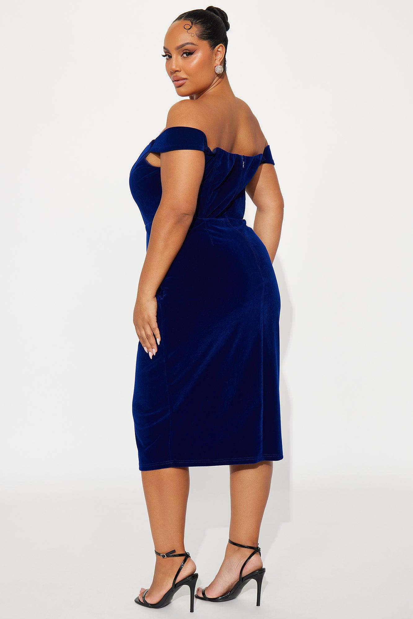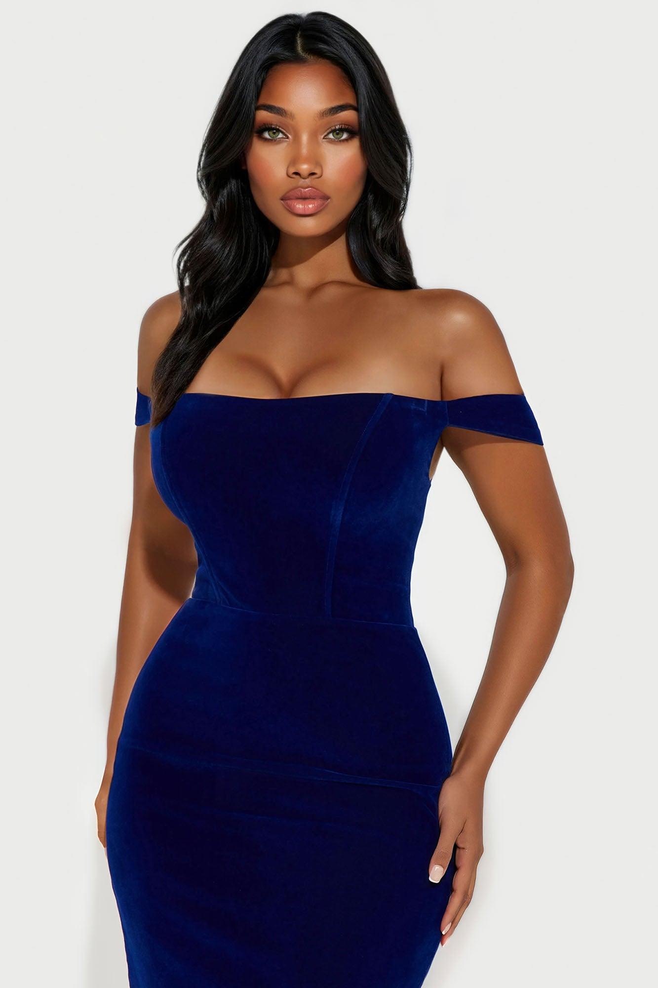 Zuri Off Shoulder Velvet Midi Dress - Navy Female